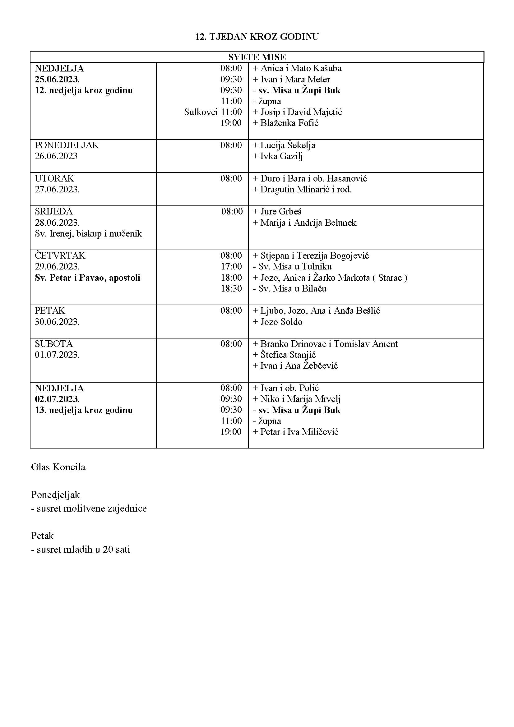 NEDJELJA – 25. 6. 2023. – 12. nedjelja kroz godinu