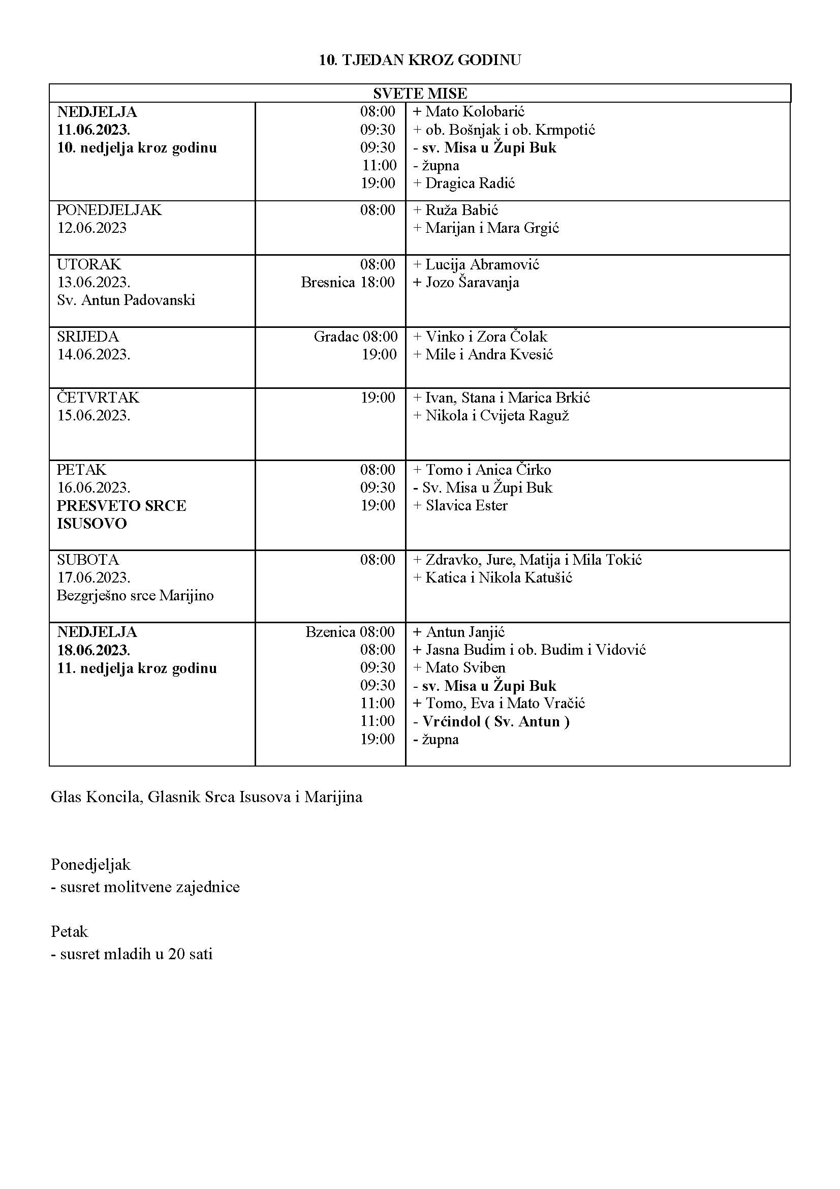 NEDJELJA – 11. 6. 2023. – 10. nedjelja kroz godinu