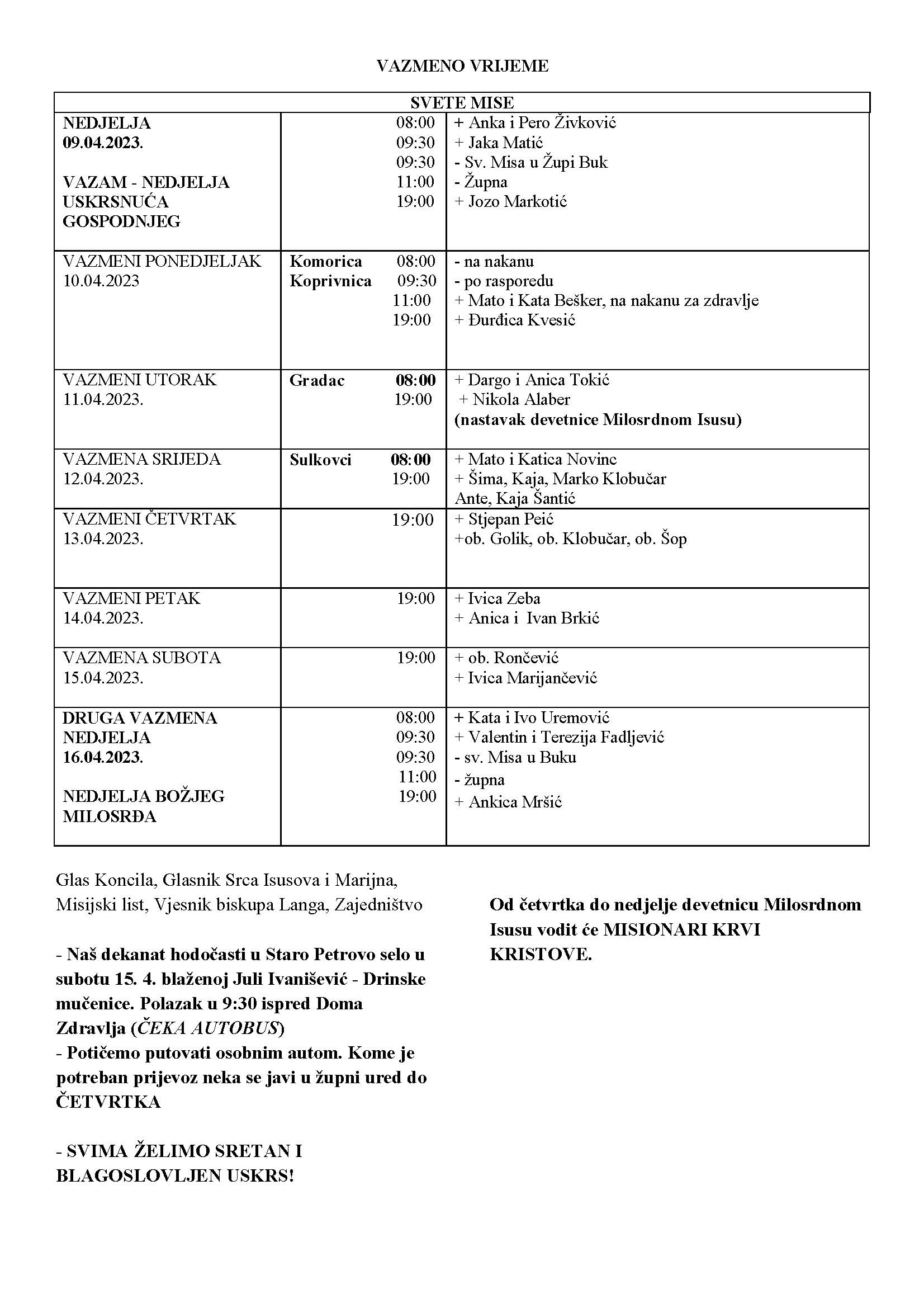 NEDJELJA – 9. 4. 2023. – VAZAM – NEDJELJA USKRSNUĆA GOSPODNJEG