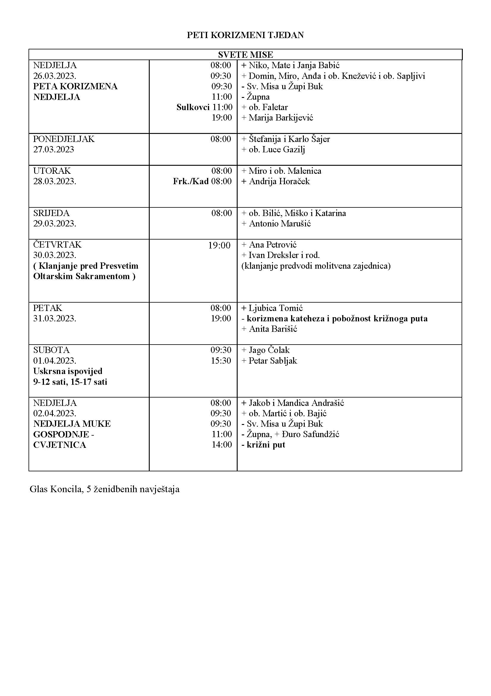 NEDJELJA – 26. 3. 2023. – PETA KORIZMENA NEDJELJA