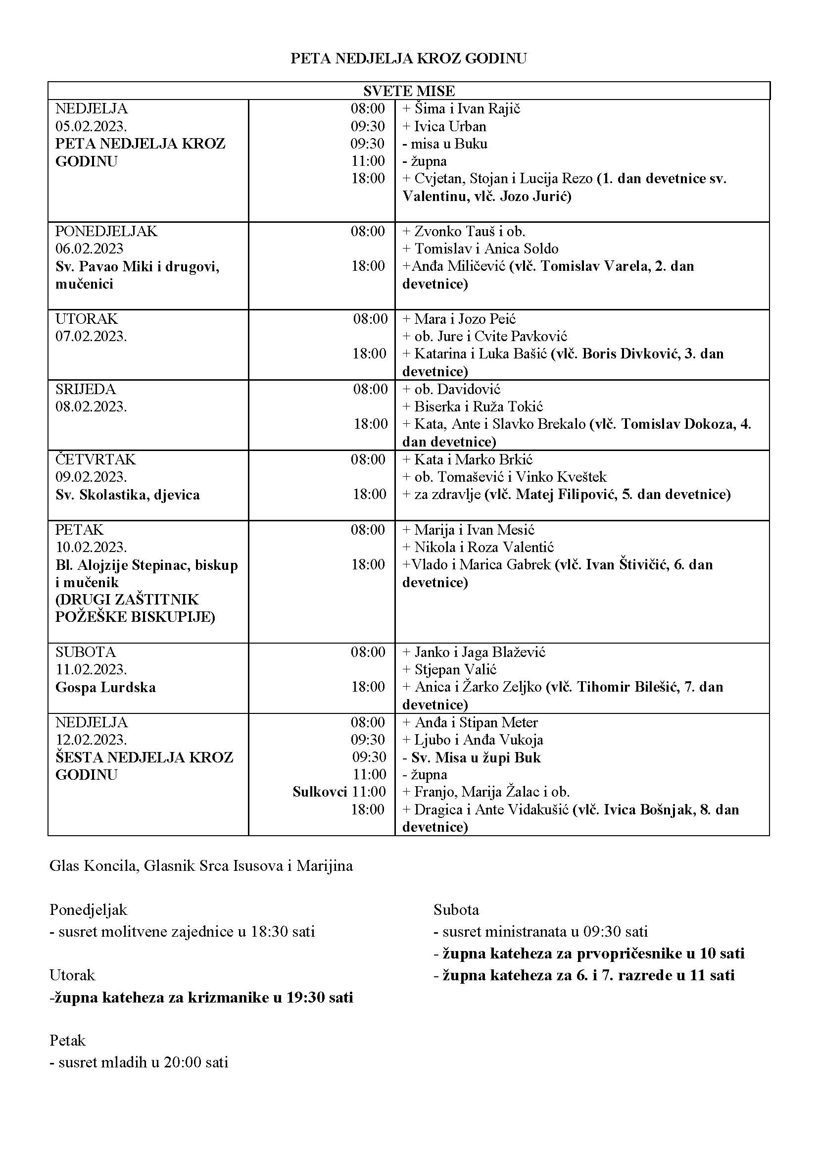NEDJELJA – 5. 2 .2023. – PETA NEDJELJA KROZ GODINU