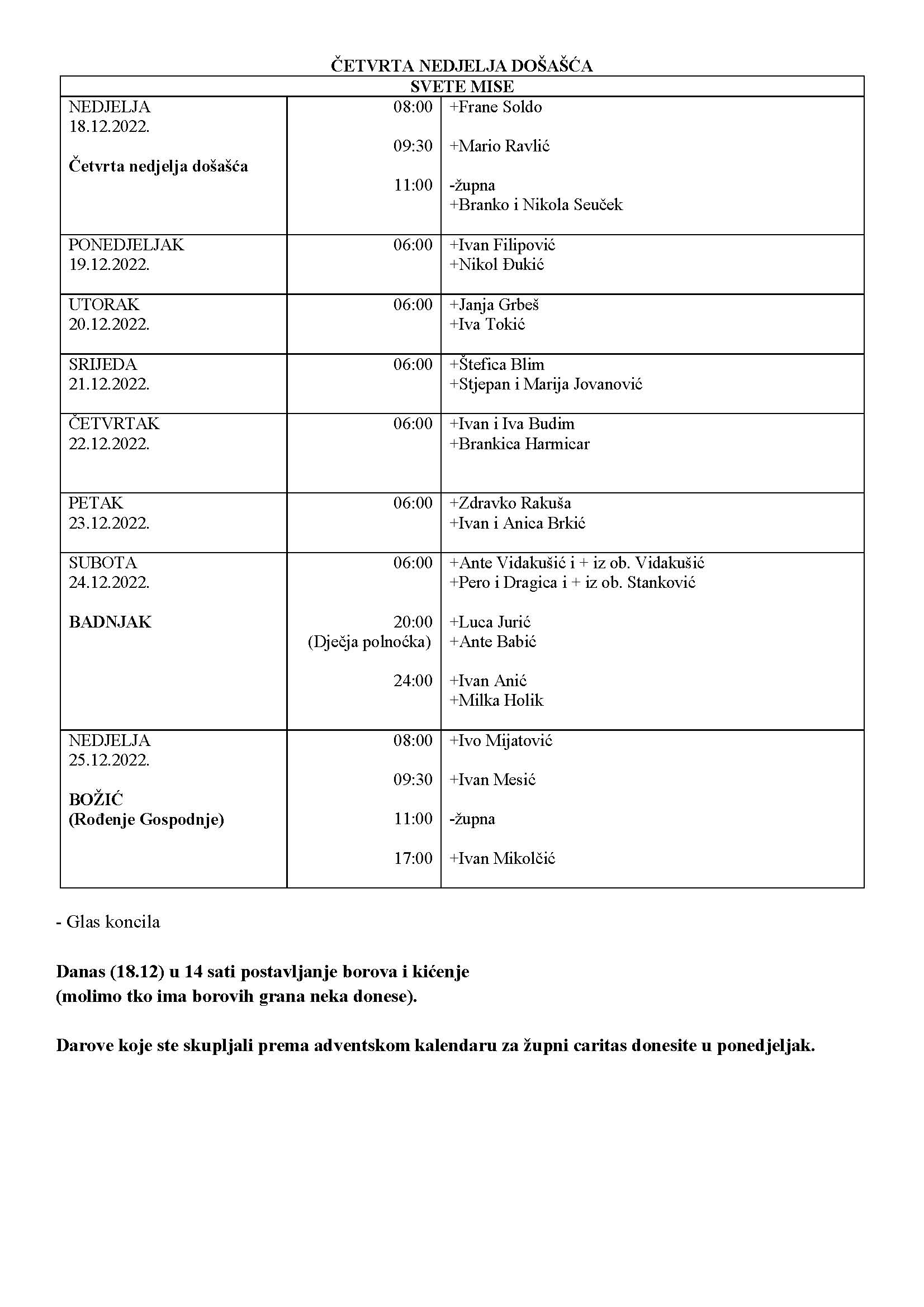 NEDJELJA – 18. 12. 2022. – Četvrta nedjelja došašća