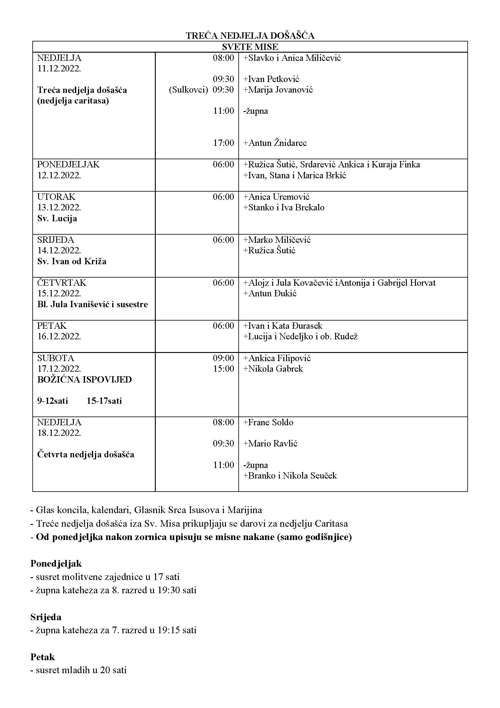 NEDJELJA – 11. 12. 2022. – Treća nedjelja došašća