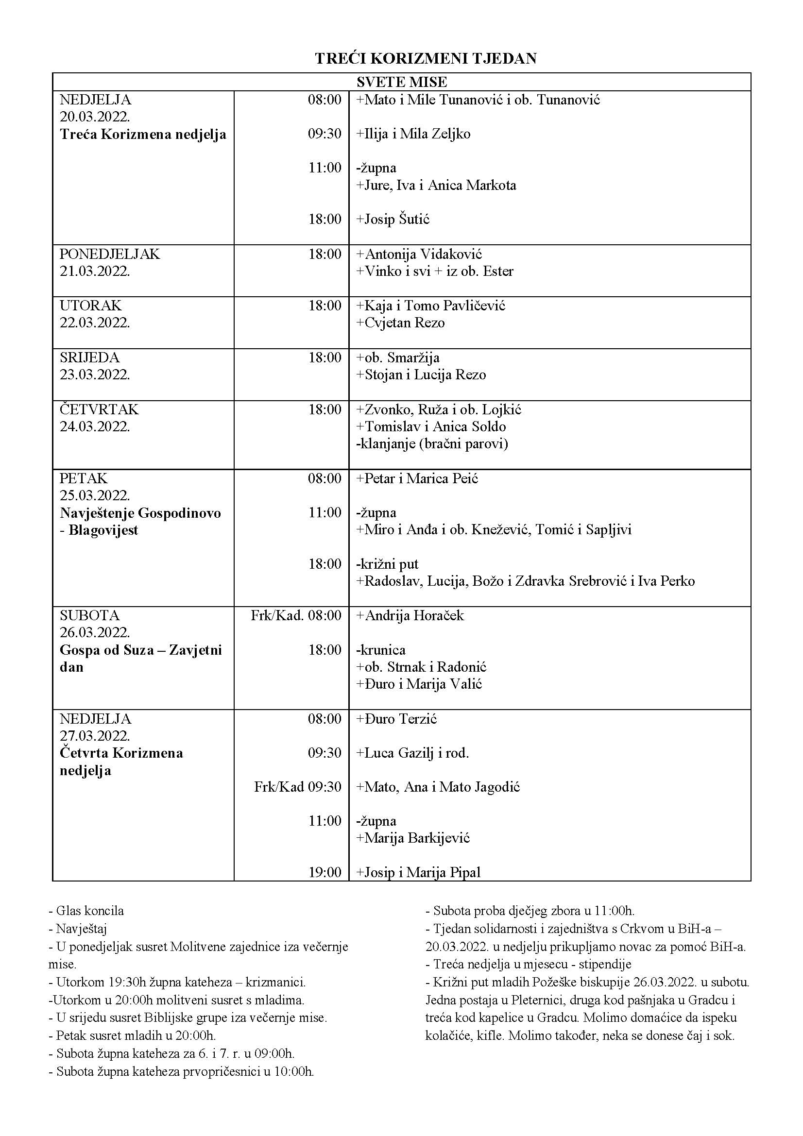 11:00 – župna +Jure, Iva i Anica Markota