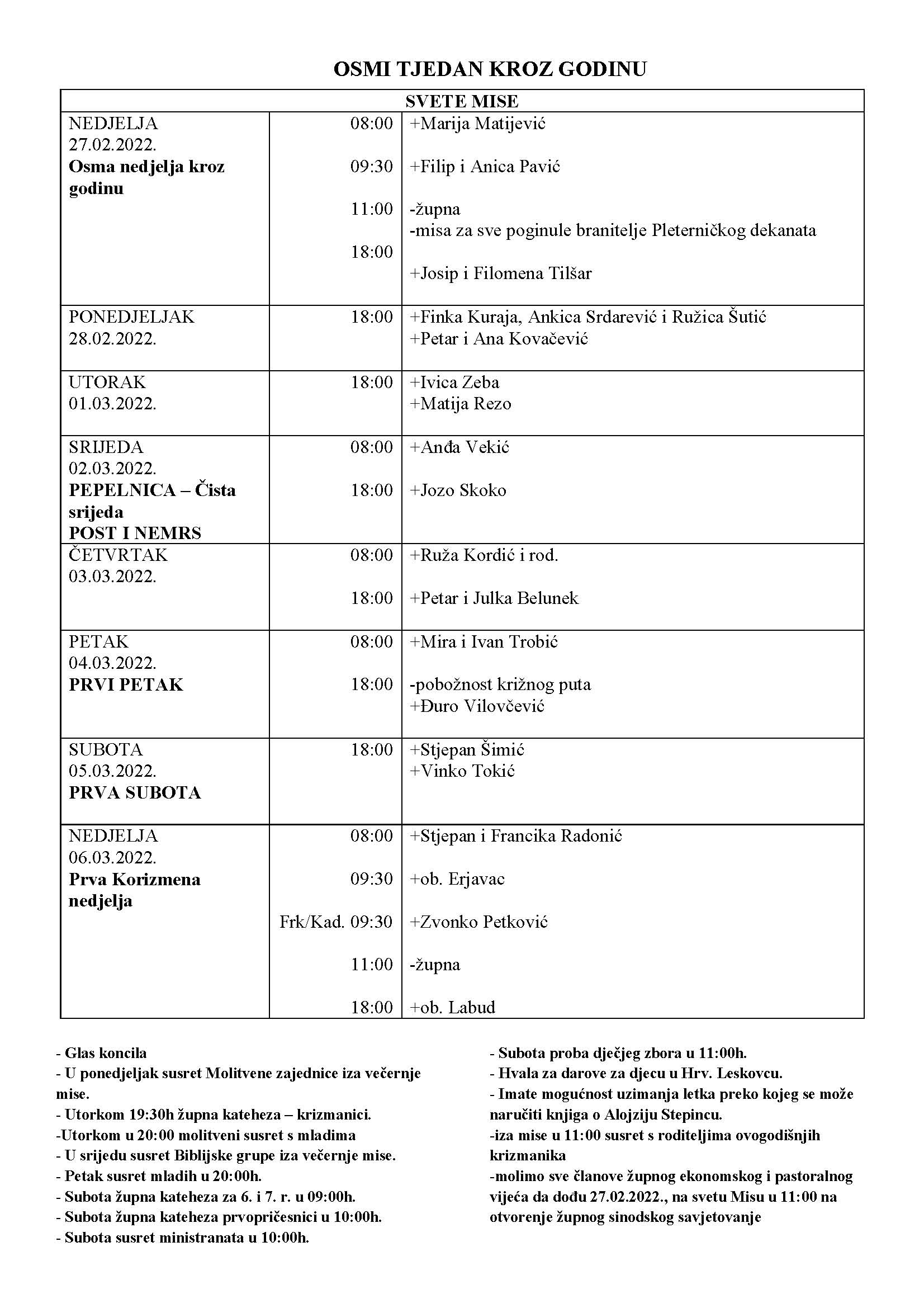 NEDJELJA 27. 2. 2022. – Osma nedjelja kroz godinu
