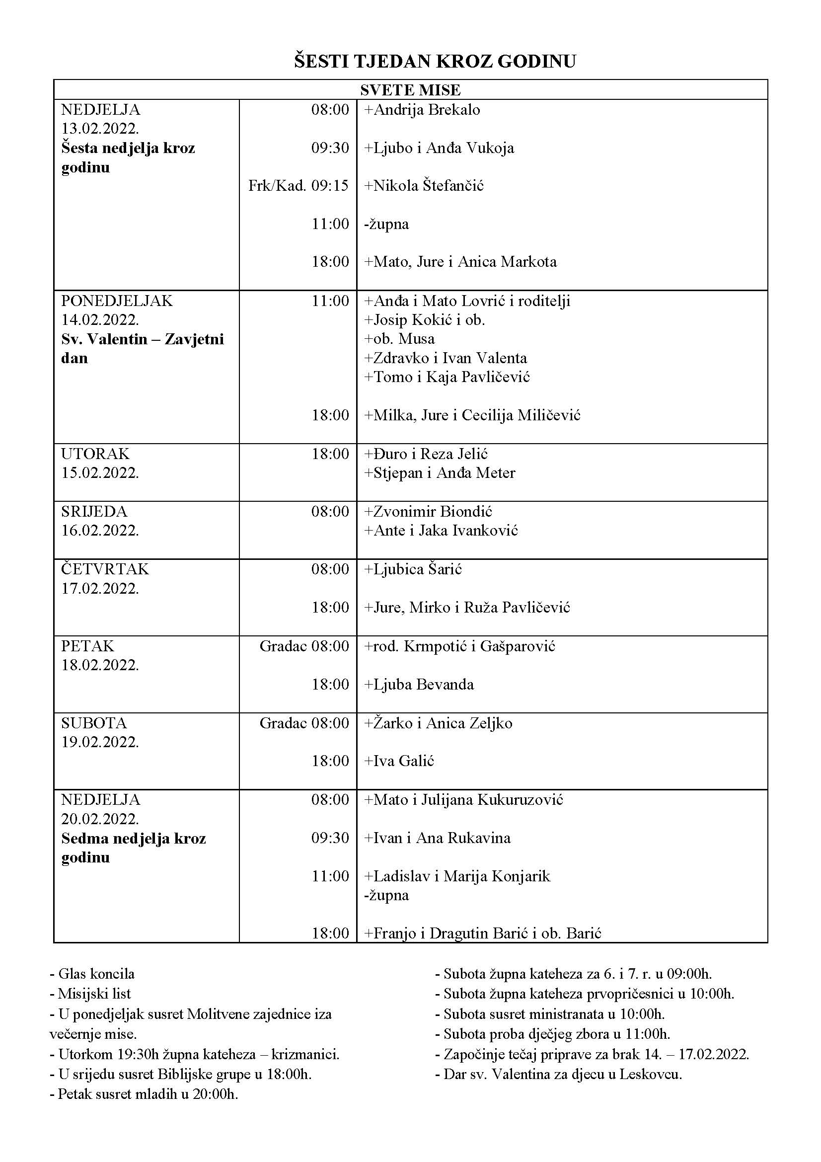 NEDJELJA – 13. 2. 2022. Šesta nedjelja kroz godinu