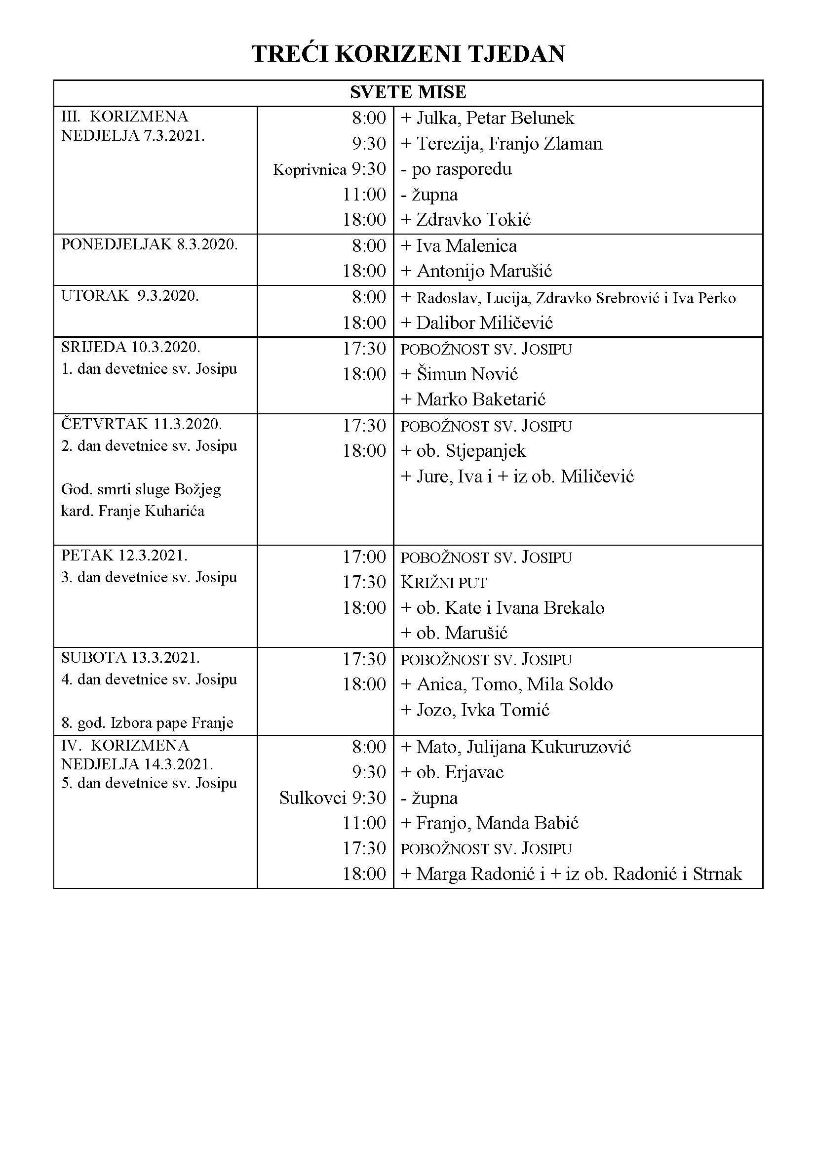 III. KORIZMENA NEDJELJA – 7. 3. 2021.