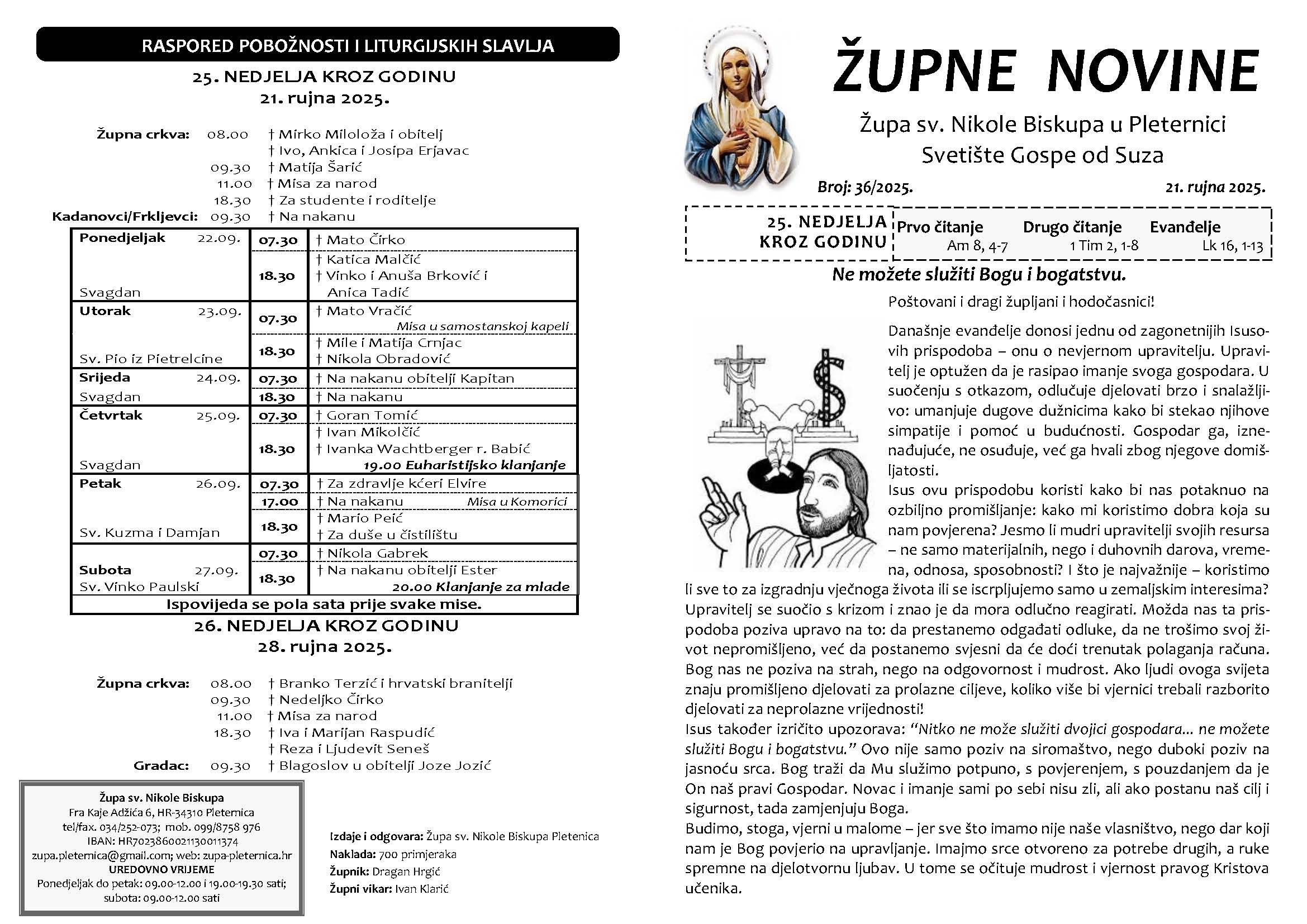 25. NEDJELJA KROZ GODINU – 21. 9. 2025.