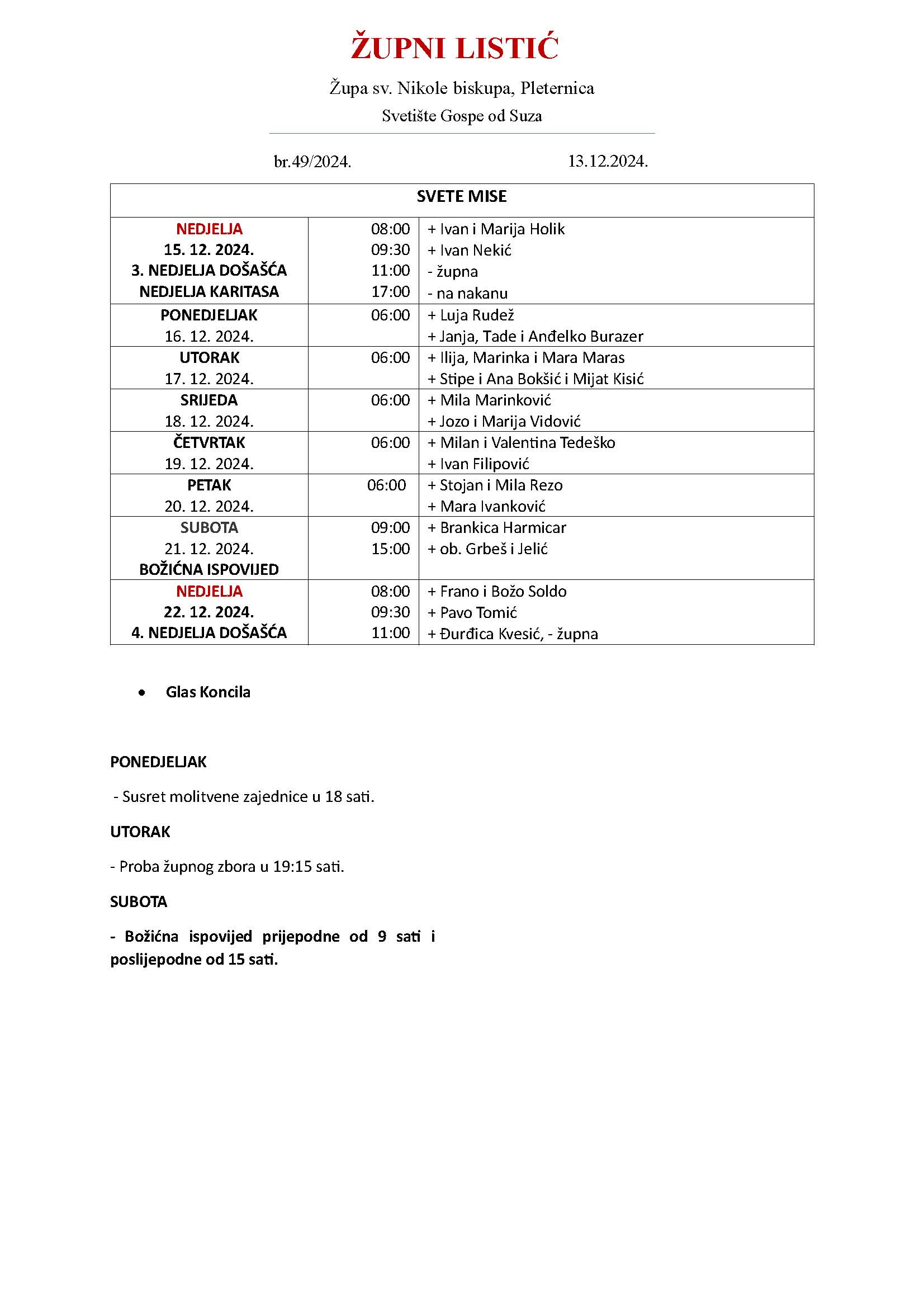 NEDJELJA – 15. 12. 2024. – 3. NEDJELJA DOŠAŠĆA – NEDJELJA KARITASA