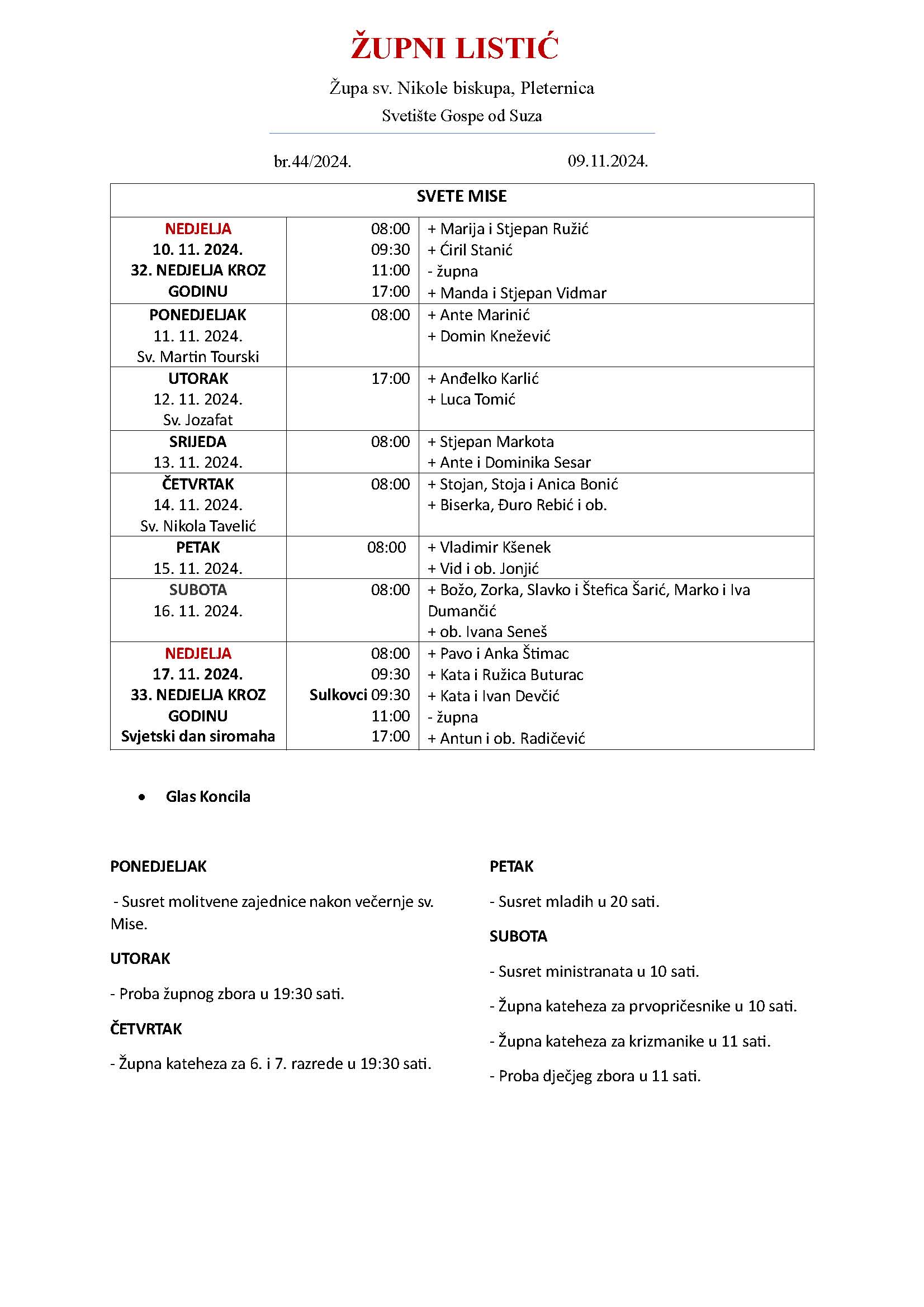 NEDJELJA – 10. 11. 2024. – 32. NEDJELJA KROZ GODINU