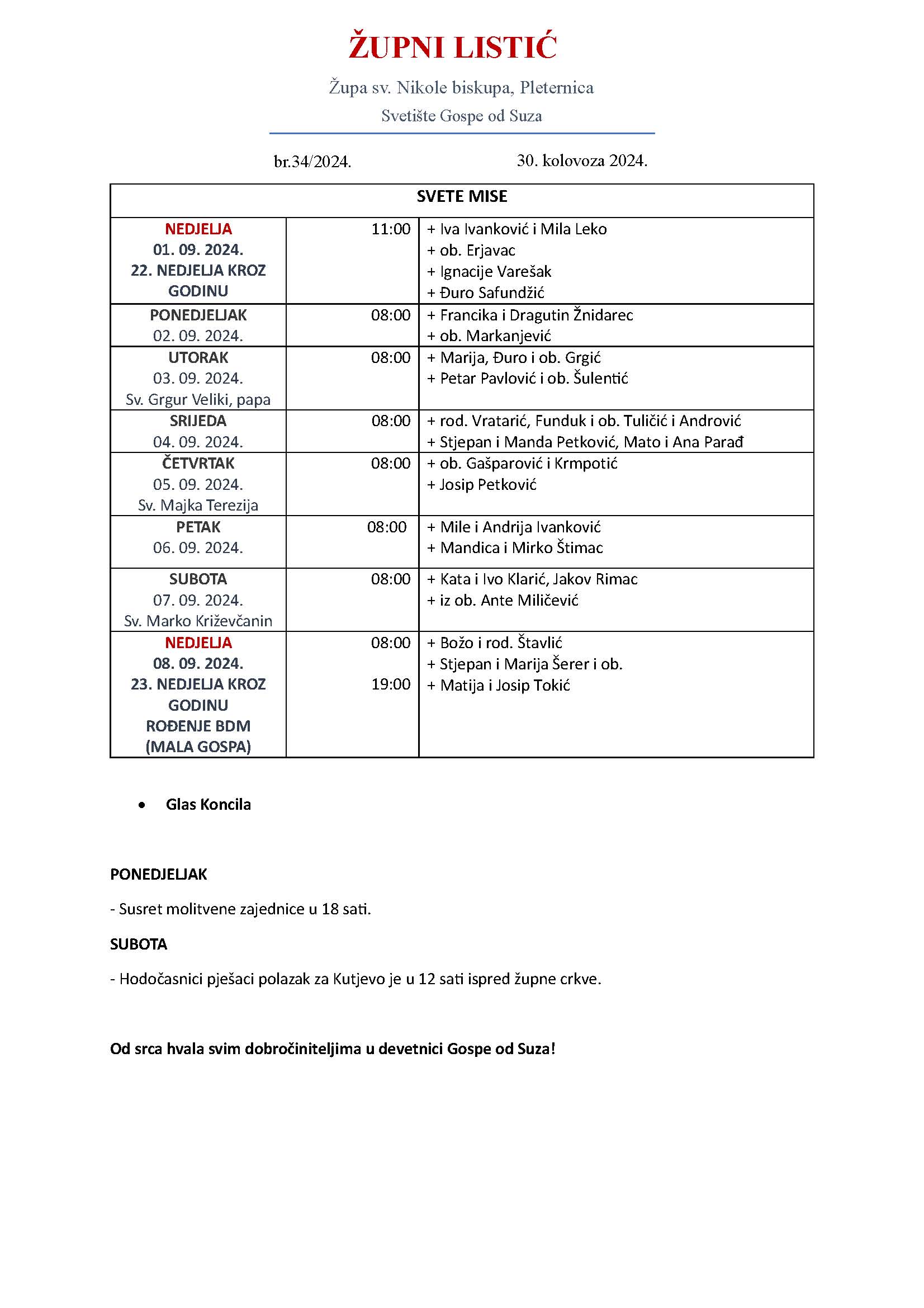 NEDJELJA – 1. 9. 2024. – 22. NEDJELJA KROZ GODINU