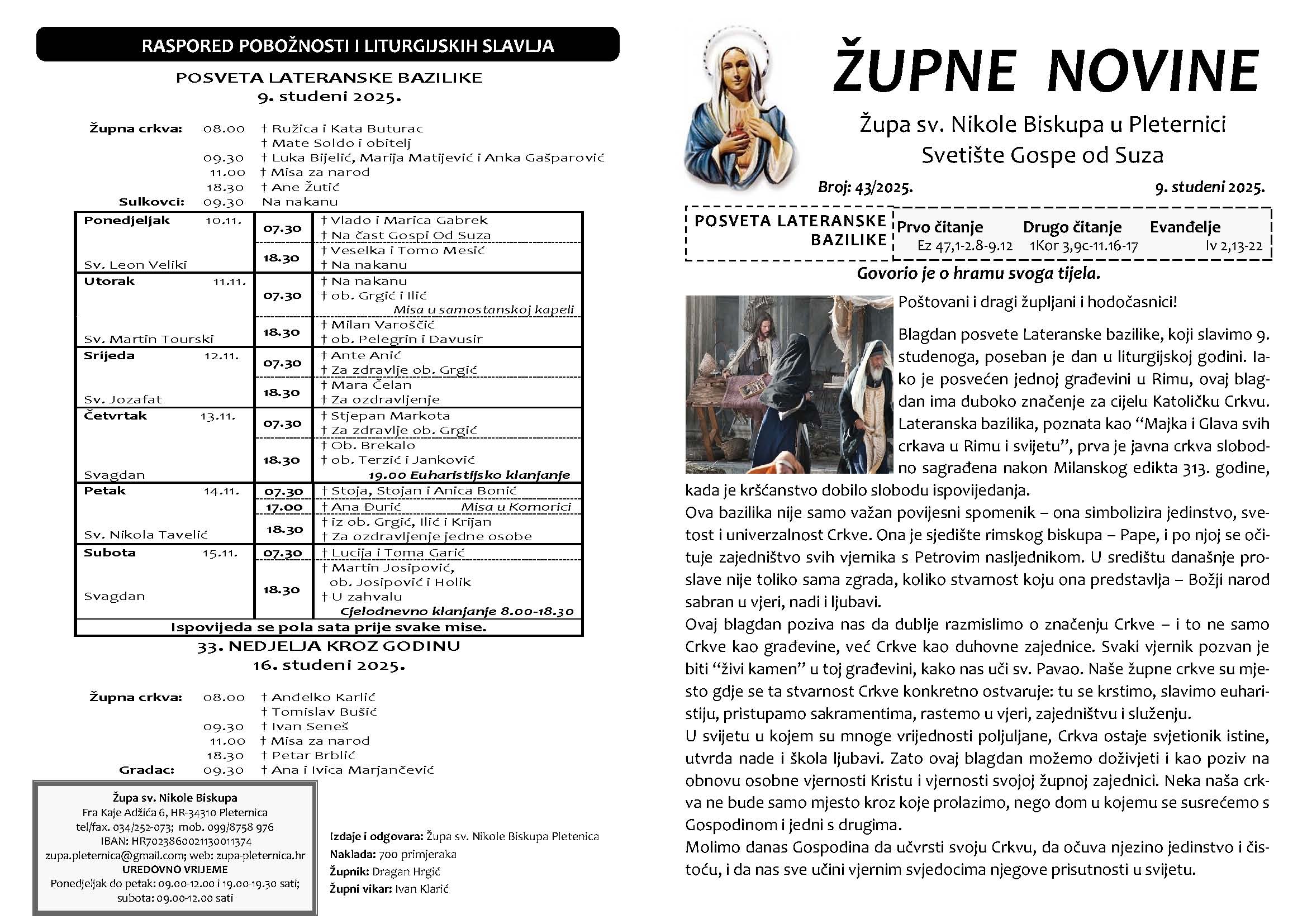 POSVETA LATERANSKE BAZILIKE – 9. 11. 2025.