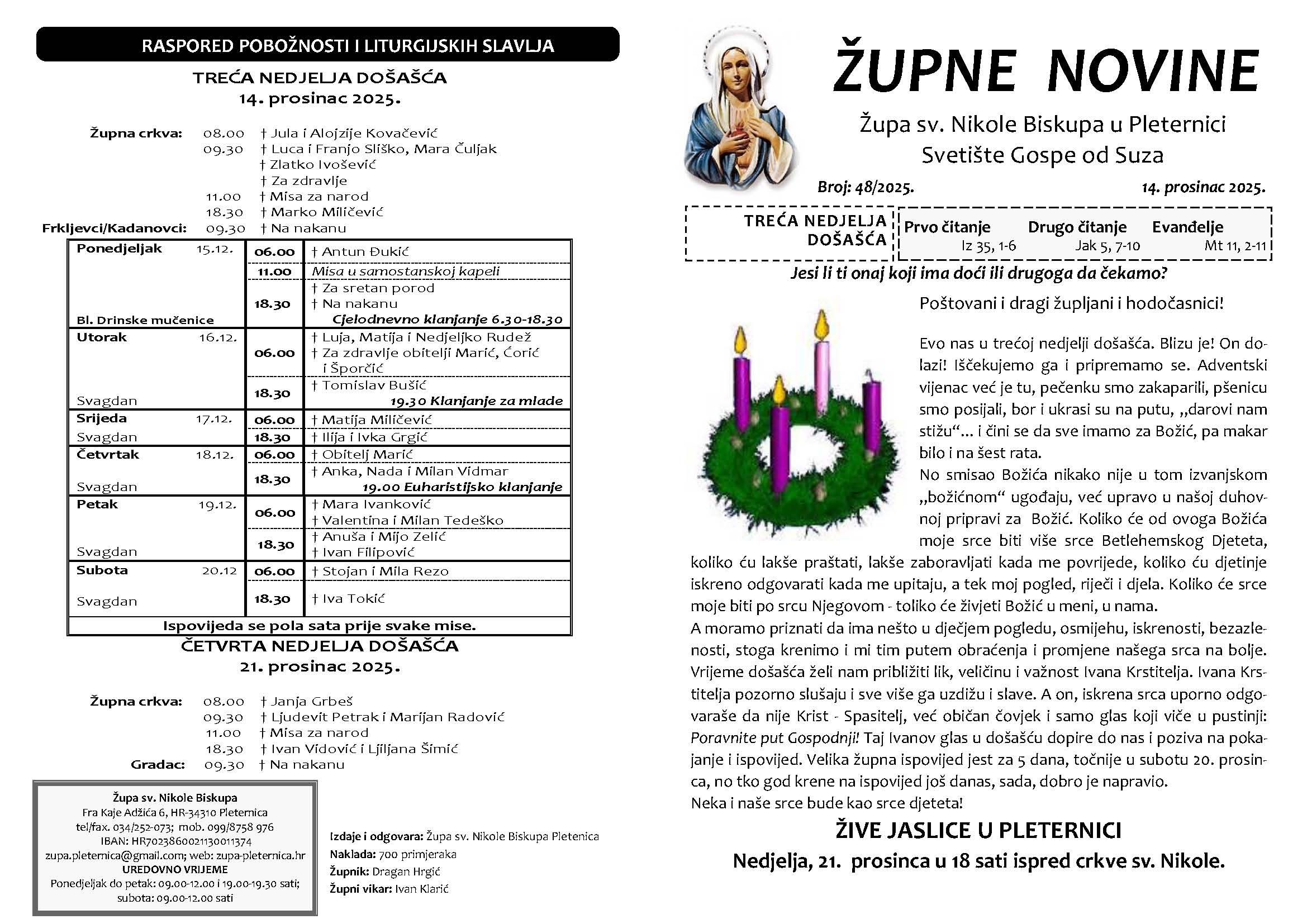 TREĆA NEDJELJA DOŠAŠĆA – 14. 12. 2025.
