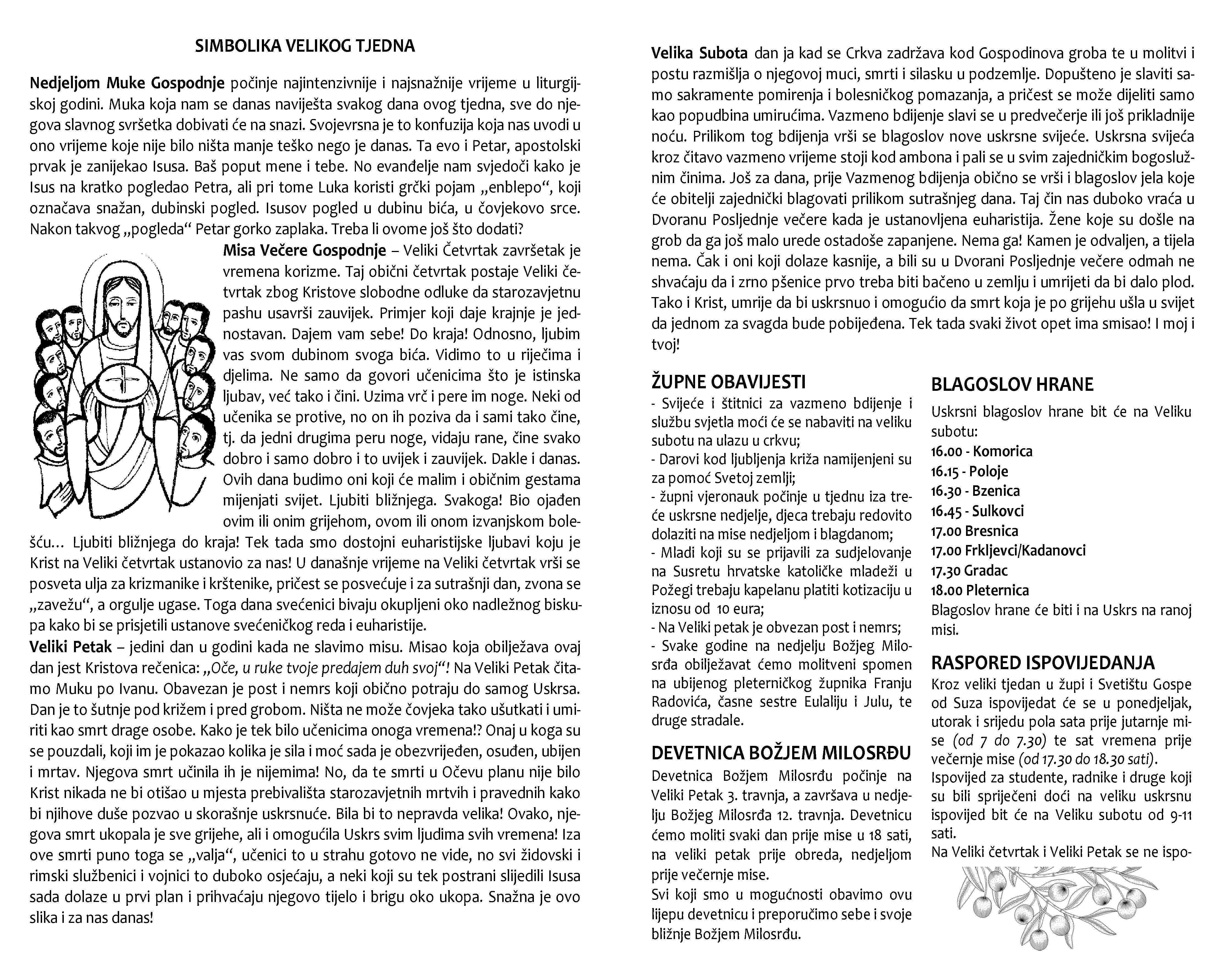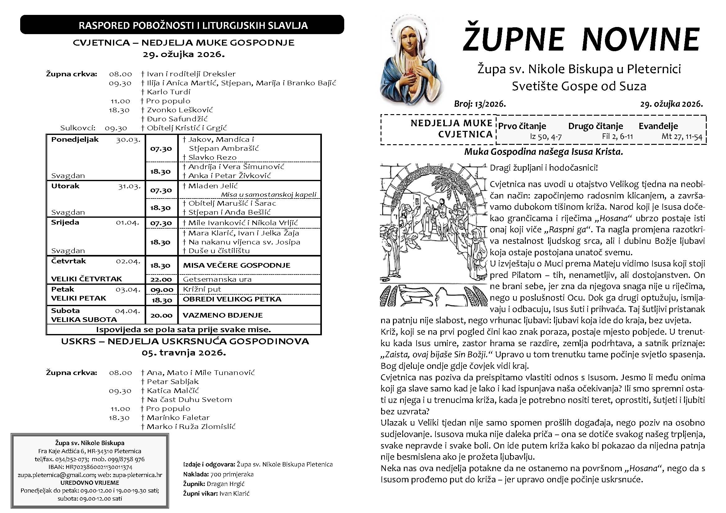 CVJETNICA – NEDJELJA MUKE GOSPODNJE – 29. 3. 2026.
