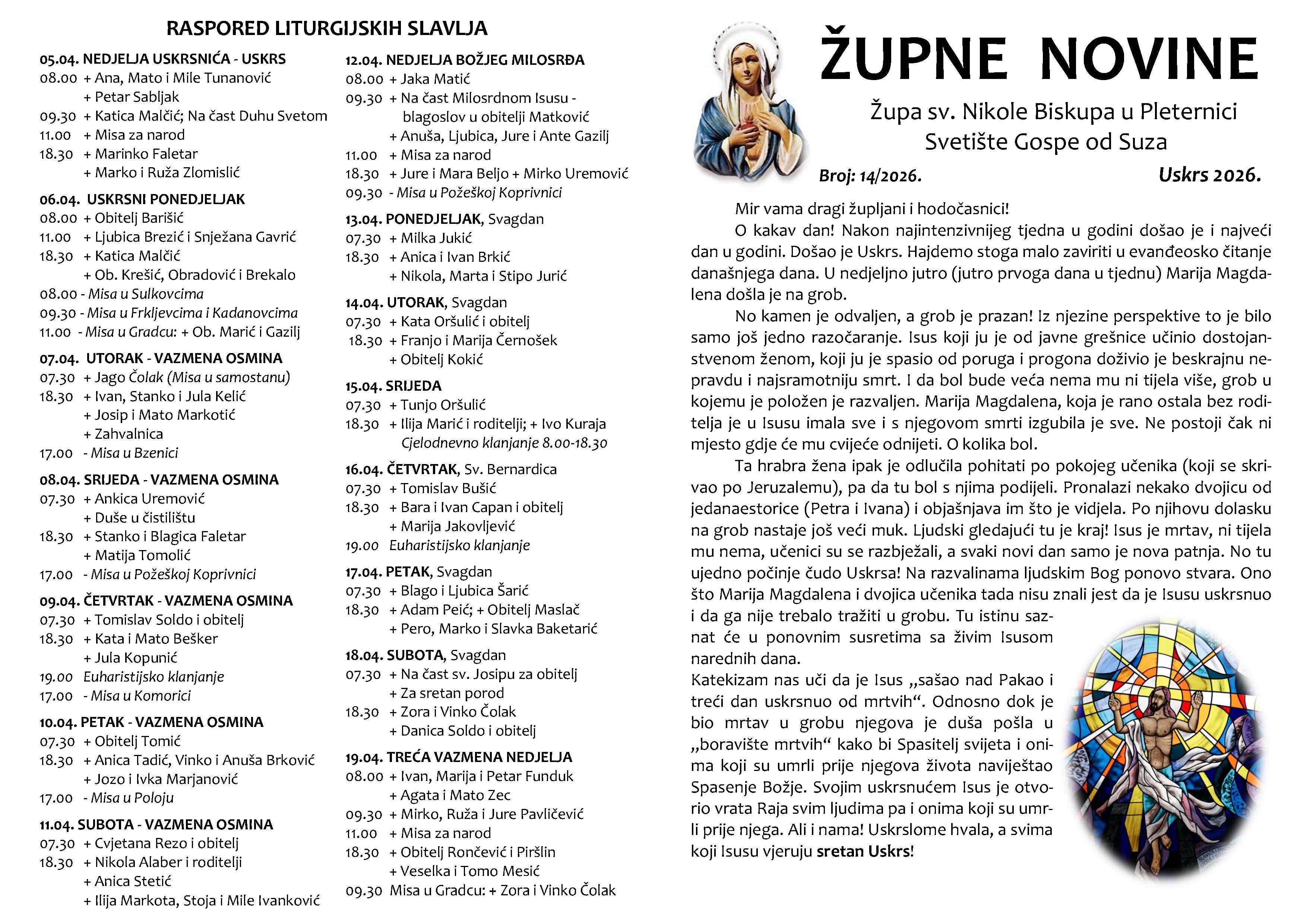 NEDJELJA USKRSNIĆA – USKRS – 5. 4. 2026.